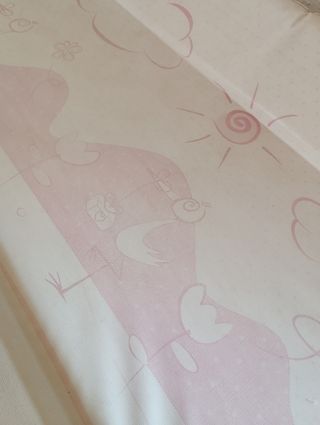 Cambiador de bebé con un diseño infantil y alegre. Es práctico para el cuidado diario. - Estampado de nubes y sol. - Borde con detalles en rosa.
