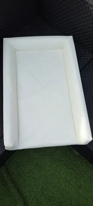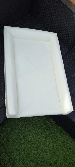 Cambiador de bebé con un diseño acolchado y protector. - La funda blanca tiene unas manchas del hierro que le daba, puede que con lejía se quiten. La regalo. - Bordes elevados para mayor seguridad. - Superficie acolchada para comodidad.