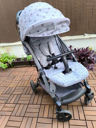 Cochecito de paseo Tuc tuc Tive Star Se pliega con una mano y se queda muy recogido. Algunos roces en chasis del uso, pero en buen estado en los tejidos y en general Visor en capota, capota extensible (dos posiciones), reclinado varias posiciones (hasta tumbado completo), arnés de 5 o 3 puntos. Reposapiés con dos posiciones. Se vende con: - saco de invierno polar colección star - saco de primavera colección star - plástico de lluvia - bolso kiwisac coleccion indios (convertible en mochila) con portatoallitas y cambiador a juego. NO ENVIO