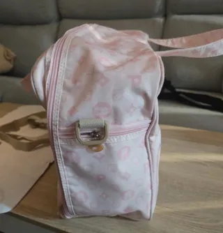 Conjunto de bolso y cambiador para bebé. - Bolso de color rosa con estampado. - Cambiador a juego.