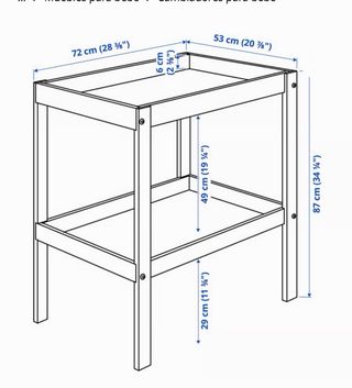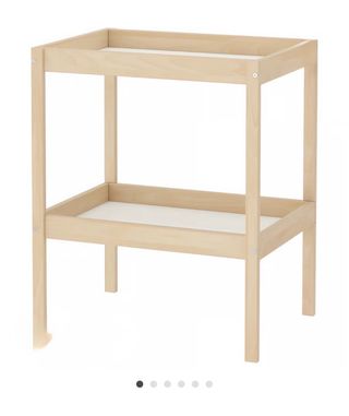 Cambiador para bebé de la marca IKEA, modelo SNIGLAR. Su diseño sencillo y de madera natural se adapta a cualquier habitación infantil. - Estructura de madera de pino. - Dos niveles para colocar accesorios. No pongo foto real porque está desmontado. Está en buen estado.