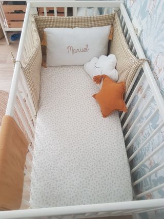 se vende Chichonera, edredon de cuna con cojines a juego y funda para cambiador color camel, todo a juego.