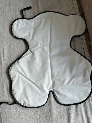 Cambiador bebé colchoneta de plástico blanco exterior y espuma. Se puede poner en mueble, cama,...Muy útil y cómodo.
