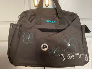 bolsa de lactancia para carro de bebe. marca Beaba. multiples bolsillos interiores y exteriores, cambiador, portachupetes