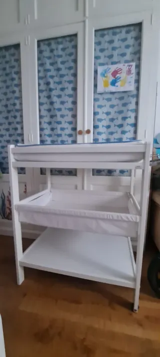 Mueble cambiador de la marca Micuna con bañera incorporada. Ideal para la habitación del bebé. Se ha utilizado muy poco - Diseño blanco. - Incluye cubeta para el baño del bebé y desagüe para facilitar la salida del agua. - Amplios cajones - Parte de arriba donde poder cambiar al bebé. - Ruedas con freno para facilitar el movimiento.