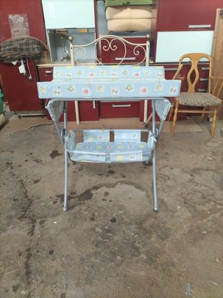 Cambiador de bebés en perfecto estado, listo para usar. Es muy práctico y fácil de limpiar. - Estructura estable y ligera. - Incluye cambiador acolchado con estampado de animales. - Bandeja inferior para guardar artículos de bebé.