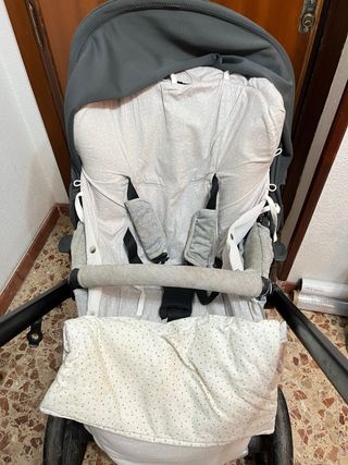 Carricoche Nurse Cube en color gris, en buen estado. - Plegado compacto. - Capota extensible. - Incluye bolso a juego , con cambiador y saco de invierno - Tejido acolchado. Una correa para atar al bebe esta suelta.