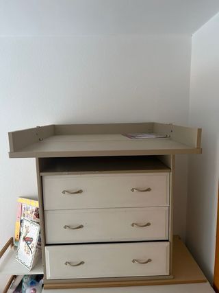 Mueble cambiador con cajonera para bebé. - Diseño funcional y práctico. - Cajonera con tiradores. - Acabado en color beige.