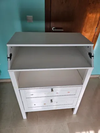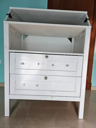 comoda/cambiador bebe super cómoda tanto para almacenaje como para cambiar al bebe.Muy espaciosa con capacidad para guardar muchísimas cosas.Posibilidad de ponerle encima un cojín cambiador grande.En buen estado