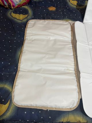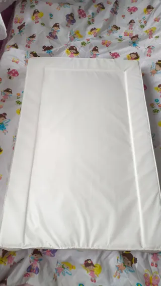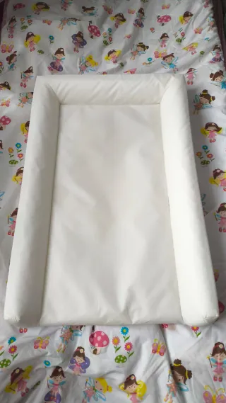 Cambiador acolchado para bebé, ideal para la rutina diaria. - Superficie impermeable y fácil de limpiar. - Bordes elevados para mayor seguridad. - Color blanco. La funda es nueva se ha usado 2 veces...el cambiador si esta mas desgastado