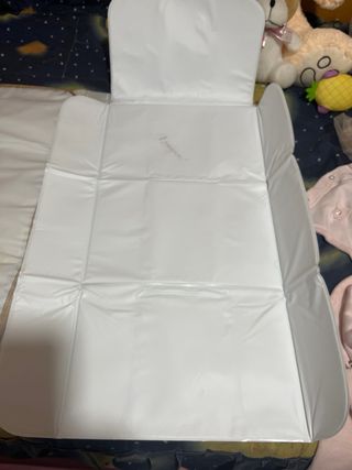cambiadores bebe plastificados para una mejor limpieza uno tiene una mancha pero nunca se ha usado el precio es por los dos Mira mi perfil hay mas cosas