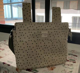 Bolso para carro de bebé de la marca Walking Mum con un bonito estampado de corazones. - Color beige con corazones verdes - Cierre superior con cremallera. - Bolsillos exteriores. - Incluye asas para colgar en el carro. - También lleva un cambiador. Nuevo sin uso. PRECIO NO NEGOCIABLE NO CONTESTO A OFERTAS