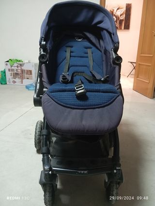 Silla en muy buen estado y funcional. No nos ha dado problemas nunca. Puedes verla en persona sin compromiso. Características técnicas de la silla: - Desde el nacimiento hasta los 15 kg. - Suspensión delantera y trasera. - Manillar regulable en altura con empuñadura ergonómica de PU leather. - Plegado fácil y compacto con nuevo bloqueo de seguridad. - Freno de pie de doble acción sincronizado. - Ruedas delanteras bloqueables y extraíbles. - Anclaje al chasis Pro-Fix. - Incluye: bolso cambiador y burbuja de lluvia. - Peso: 7,9 kg Características técnicas del capazo - Desde el nacimiento hasta los 9 kg. - Peso: 4 kg.