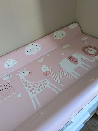 Cambiador de bebé nuevo, nunca ha llegado a usarse. Es de color rosa y tiene un diseño con animales. - Ideal para cambiar pañales de forma cómoda y segura. - Diseño infantil con animales tiernos. - Material resistente y fácil de limpiar.