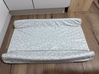 Cambiador para bebé, ideal para cambiar pañales de forma cómoda y segura. Está en muy buen estado. - Diseño con estampado de estrellas en tonos verdes. - Bordes acolchados para mayor comodidad y seguridad del bebé. - Fácil de limpiar.