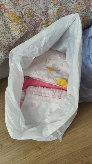 Ropa variada para niña de 0 a 24 meses. Todas las temporadas. Perfecta para usar a diario, pijamas y para ocasiones especiales. Las prendas están en buen estado. Algunas prendas más de 36 meses y algo de calzado respetuoso talla 26. Además regalo orinal marca chicco, cambiador portátil malloral y plato de silicona.