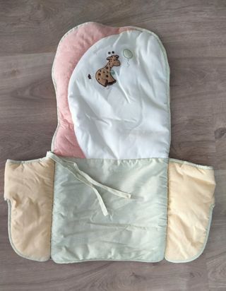 Se venden dos artículos para bebé en perfecto estado. Son ideales para facilitar los viajes con tu pequeño. - Incluye una práctica trona de viaje con estampado de gatitos y perritos, perfecta para usar en restaurantes o en casa de familiares y amigos. - También se incluye un bolso cambiador con estampado de animalitos, muy cómodo y espacioso para llevar todo lo necesario para el bebé.