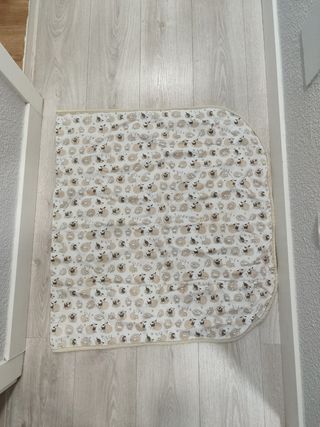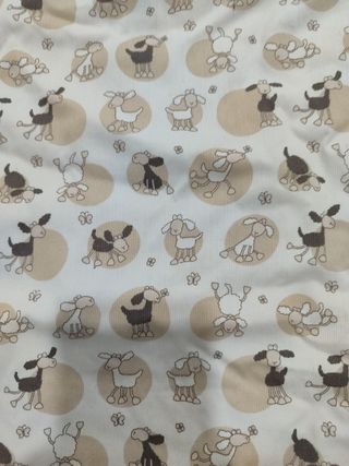 Práctica toalla con un divertido estampado de ovejas, ideal para usar como cambiador o en el carro del bebé. Su diseño alegre la hace perfecta para el día a día. - Estampado de ovejas en tonos beige y marrón. - Material suave y cómodo.