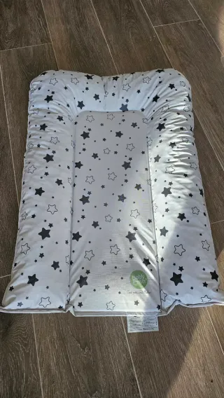 Cambiador para bebé de la marca Babycalin con un divertido estampado de estrellas. Medidas 50×70 Precio Amazon 19euros - Diseño con estrellas en blanco y negro. - Acolchado para mayor comodidad.