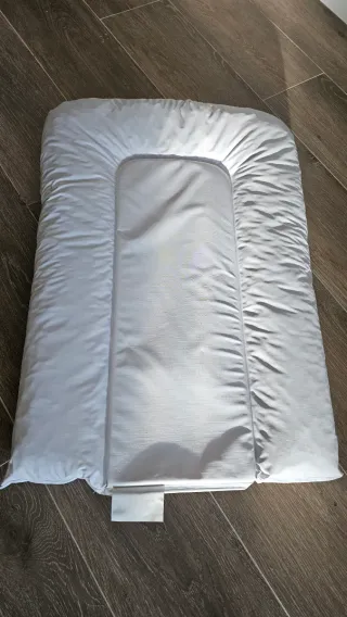 Hola. Quiero intercambiar este Cambiador de bebé de la marca IKEA. Su diseño es acolchado y seguro para el bebé, y está en perfectas condiciones como se ve en la foto. me gustaría cambiarlo por un paquete de pañales, o su equivalente en dinero. Si vives en Getafe Leganés puedo llevártelo. - Color blanco. - Material lavable.