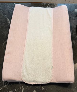 Colchoneta cambiador para bebé con funda. - Color rosa con pequeños puntos. - Funda de rizo blanco.