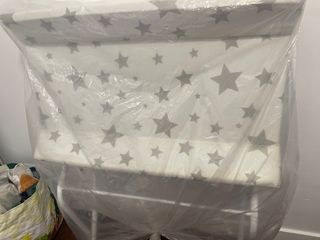 Cambiador para bebé con funda suave y borde decorativo. MEDIDAS: Alto: 90cm ancho: 52cm largo: 72cm súper práctico y cómodo. es muy resistente yo lo he usado hasta los 4 años y genial. se regala colchóncito y dos fundas y se entrega DESMONTADO