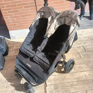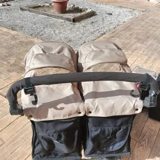 Carro gemelar de la marca Baby Monsters, ideal para hermanos con poca diferencia de edad o gemelos. Diseñado para ofrecer comodidad y practicidad. Es compacto, no necesita ser cerrado para pasar por las puertas, que suele ser un problema con este tipo de carros. Muy manejable, se maneja con una sola mano. Ruedas delanteras giran 360 grados. Muy buen estado. Incluye capazos, colchones y dos colchones de recambio. Además se incluye bolsa pañalera y cambiador de viaje. - Dos asientos independientes. - Capotas ajustables. - Cesta de almacenamiento inferior. - Ruedas todoterreno. - Arnés de 5 puntos #gemelos #carrito #sillagemelar