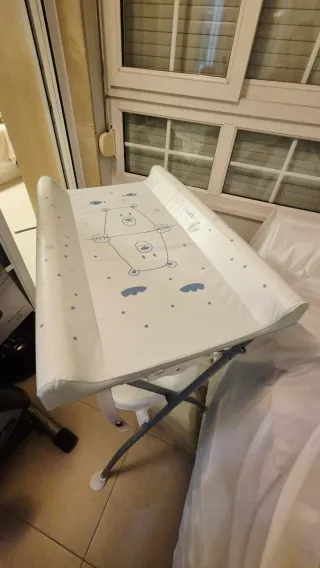 Preciosa bañera cambiador de Chicco para bebé, en color gris claro. Está en muy buen estado y es perfecta para facilitar el baño y el cambio de pañales. - Incluye bañera integrada y cambiador acolchado. - Dispone de prácticos compartimentos para guardar artículos de aseo. - Estructura metálica resistente y estable. - Fácil de montar y desmontar. - Ocupa poco espacio al plegarla. - La bandeja de abajo tiene la altura justa para poder ponerla sonbre el bidel y que el tubo deshague ahi perfectamente.