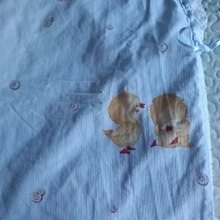 Arrullo cambiador para bebé con un tierno estampado de patitos. - Tejido suave y cómodo. - Diseño con patitos amarillos. - Ribete de encaje blanco. -Lazos azules.