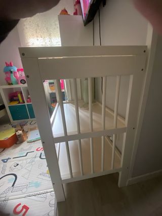 IKEA: Cuna Gulliver en perfecto estado con alguna leve marca (puedo enviar fotos) pero apenas usada. Cambiador Gulliver apenas usado con cambiador VADRA muy mullido y NUEVO. Se regalan 2 fundas de cambiador NUEVAS (Skotsam). Colchón TOTALMENTE NUEVO de muelles ensacados de Ikea. (60×120×11). Se regalan varios juegos de sábanas. El precio en tienda de todo el pack serían 353€. Se entrega ya montado. Se recoge en Parla. (Madrid) Precio algo negociable