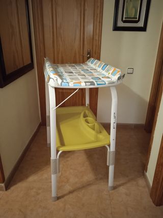 Preciosa bañera para bebé con ruedas y cambiador. Está en muy buen estado y es muy práctica. - Incluye bañera y cambiador. - Estructura con ruedas para facilitar el movimiento. - Bandeja inferior para guardar accesorios.