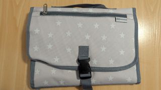 Cambiador bebe Mmanna gris con estrellitas,para llevartelo a cualquier sitio ,con compartimentos para pañal y toallitas y acolchado para la cabezita. Regalo leotardo gris de Isabel mora ,nuevos talla 1(21/22)