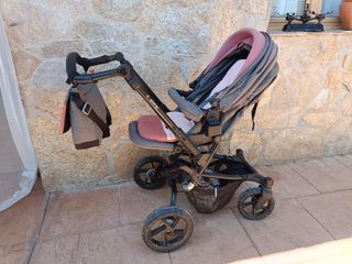 Carro del 2019, usado solo año y medio. Perfecto estado, muy manejable, freno cómodo en el manillar y amortiguadores. Capota con ventilación y colchoneta muy cómoda, mullida. Cesta de gran almacenaje para las compras. Al ser todoterreno no notas los baches, sirve para todo, ciudadad, adoquines, caminos de tierra... Incluye capazo y silla con accesorios (plástico para lluvia, canastilla y cambiador). Costo 800€.
