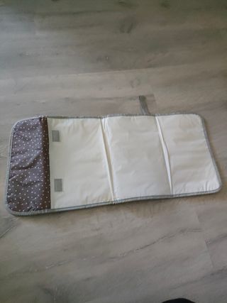 Cambiador de bebé portátil, ideal para llevar en el bolso o mochila.Es ligero y fácil de llevar,ocupa poco espacio.Marca WM mide 53 x 31 cmts.Como nuevo. - Diseño acolchado. - Estampado discreto. - Bordes reforzados.
