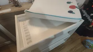 Cambiador de la marca IKEA, ideal para la habitación del bebé. Incluye accesorios y colchoneta. - Diseño funcional y seguro. - Colchoneta acolchada para mayor comodidad.
