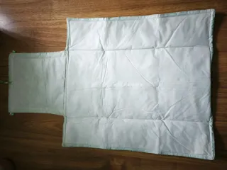 Sin estrenar. Se sujeta en la cuna. Fácil de poner y quitar, se puede dejar en la parte exterior de la cuna colgado de dos anclajes para que no ocupe espacio. Lleva un arnés para sujetar al bebé.
