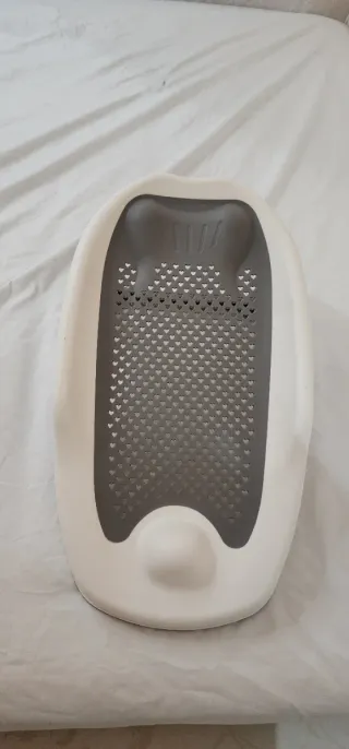 Hamaca y cambiador para bebé, ideal para el baño. Su diseño ergonómico ofrece comodidad y seguridad. - Material de plástico resistente. - Zona de rejilla para drenaje. - Soporte integrado para mayor estabilidad.