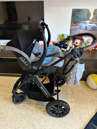 Es un kinderkraft de 3 piezas Xmoov color gris. Literalmente esta NUEVO. Se ha usado 1 año y pocas veces, puedo enviar mas fotos en detalle por whatsapp. Preferiblemente recogida en mano. Esta impecable. Pregunta lo que quiera 1 - Sillita coche/carrito de 0 hasta 13kg 2 - Capazo adaptable a sillita 0 hasta 22kg 3 - Sillita de paseo con portavasos y cesta 4 - Saco para piernas invierno 5 - Cambiador 6 - Bolso 7 - Mosquitera 8 - Protector de lluvia Las 4 ruedas son de camara de aire con amortiguador y extraibles con un click. El agarre central del capazo es de boton y giratorio, no es de esos fijos. Con quitar un lado puedes meter al bebe.