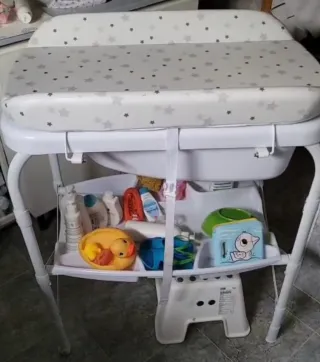 Cambiador de bebe. Es perfecto para cambiar pañales cómodamente, vestir y bañar. Necesito quitarlo por temas de espacio - Incluye cambiador y soporte. - Estructura ligera y fácil de montar. - Bandeja inferior para guardar artículos de bebé.