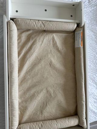 Colchoneta cambiador Stokke en color blanco. - Incluye sistema de anclaje. - Diseñada para la cómoda Stokke Sleepi, pero se puede acoplar a otros muebles En perfecto estado. Usado 6 meses.