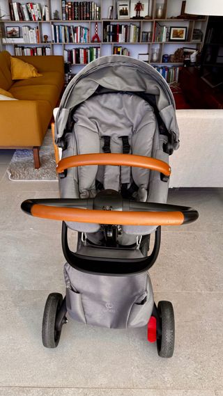 Vendo conjunto Stokke Xplory X en color Gris Moderno con manillar de piel marrón. PVP del lote: más de 1.477 €. Incluye: — Silla de paseo Stokke Xplory X — Capazo Stokke Xplory X (apenas usado, prácticamente nuevo) — Bolso cambiador Stokke Xplory X con cambiador plegable incluido — Bolsa delantera de almacenamiento Stokke Xplory X Todo en buen estado, bien cuidado y limpio. El capazo se usó muy poco. Comprado directamente en Stokke, tengo factura original. Único detalle: la capota tiene una pequeña zona donde los hilos se están deshaciendo ligeramente (visible en las fotos). No afecta al uso ni a la estructura. Modelo actual de Stok