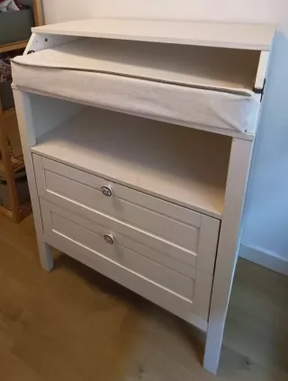 Se vende cambiador modelo Sundvik de Ikea en color blanco. Ideal para la habitación infantil. - Diseño funcional y elegante. - Acabado en blanco. - Amplio espacio de almacenamiento. -con pequeñas marcas de uso, precio nuevo 199€