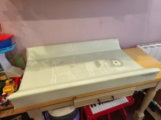 Cómoda cambiador de la marca "micuna",muy bien cuidada.Trae agujeros para poderle poner ruedas(no incluidas,en cualquier bazar se compran)La tapa del cambiador se levanta para una bañera(no incluida) pero que se puede comprar por 5/10€