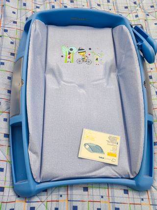 Cambiador para bebé, nuevo a estrenar. Está en perfecto estado. - Diseño con estampados infantiles. - Material acolchado y fácil de limpiar. - Ideal para cambiar pañales de forma cómoda y segura. Recogida local.