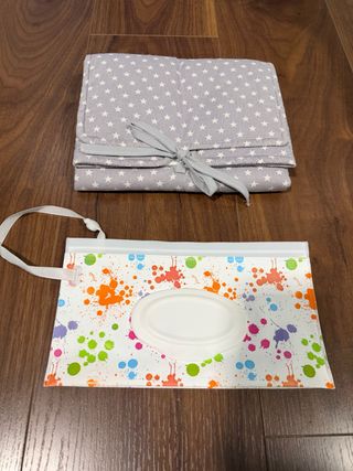 Lote de dos cambiadores de bebé de tela. Muy práctico para llevarlo en el bolso y cambiar al bebé en cualquier sitio. Acolchados, muy suaves. Usados en muy pocas ocasiones. Más artículos de bebé en mi perfil.