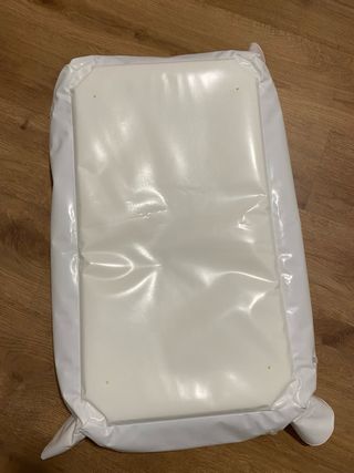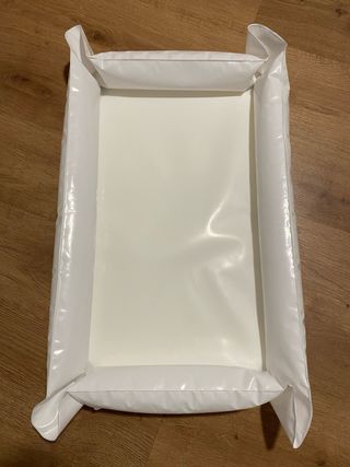 Cambiador hinchable de color blanco, ideal para viajes o para tener en casa. - Material impermeable y fácil de limpiar. - Bordes acolchados para mayor seguridad. - Diseño compacto y portátil.