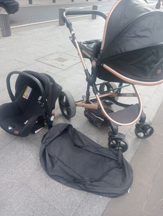 Vendo cochecito de bebé en color negro con detalles dorados. Está en muy buen estado y listo para usar. Incluye capazo, silla para coche y bolso cambiador a juego. - Cochecito ligero y fácil de manejar. - Tejidos de alta calidad. - Diseño elegante y moderno. - Incluye todos los accesorios que se ven en la foto.negociable