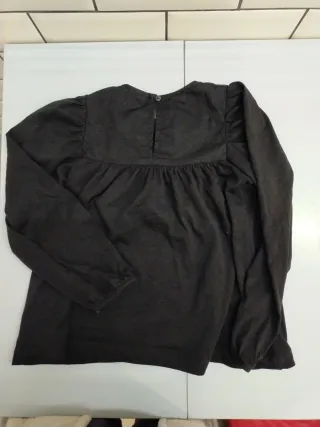 Blusa de manga larga de Zara en color negro con un bonito bordado floral en la parte delantera. - Talla 8-9 años (130 cm). - Manga larga abullonada con puño elástico. - Cuello redondo. - Detalle de bordado floral blanco en el pecho.