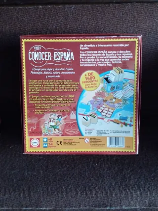 Juego de mesa educativo para viajar y descubrir España. Ideal para toda la familia. Está completo y en perfectas condiciones. Como nuevo. - Más de 1600 preguntas sobre personajes, historia, cultura y monumentos. - Para 2-4 jugadores. - Edad recomendada: +8 años. – Refuerza el conocimiento de geografía, historia y cultura de España – Mejora la memoria y la atención – Desarrolla el razonamiento y la capacidad de responder preguntas – Fomenta el aprendizaje de forma lúdica y participativa – Favorece el juego en familia y la conversación – Ideal para aprender viajando “con la mente”, sin pantallas Un buen regalo de Reyes!