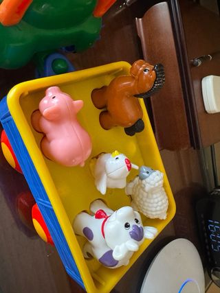 ¡Atención! El juguete está en idioma POLACO. Todo está en perfecto estado y funciona correctamente. El tractor se desplaza y canta una canción. Al presionar los animales, se escuchan sonidos y rimas infantiles.